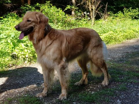 Yoshi ist ein feinfühliger Rüde, das sieht man ihm auch an. Wenn ich auf dem Rückweg vom Spaziergang seiner Meinung nach den falschen Weg gehe (womit er im Wald auch schon Recht hatte), stupst er mich von hinten in die Hand.